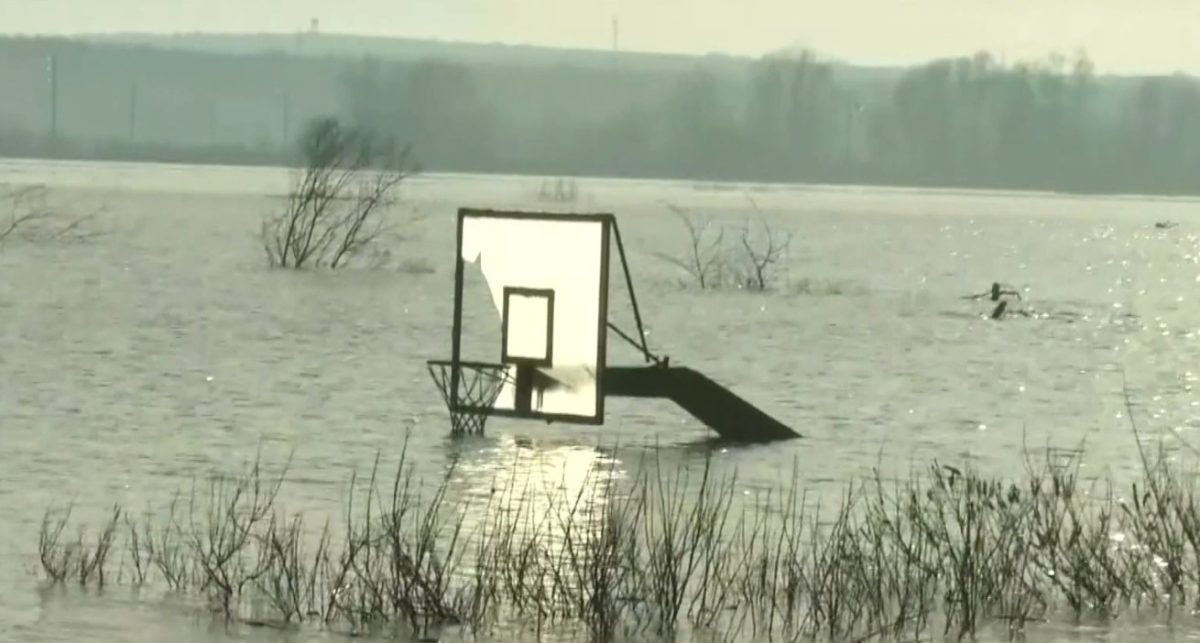 Οι εικόνες από την περιοχή είναι αποκαρδιωτικές. Γήπεδα και μπασκέτες έχουν σχεδόν καλυφθεί από τα νερά σε ύψος έως και τριών μέτρων, με τα δίχτυα να διακρίνονται μόλις πάνω από την επιφάνεια.