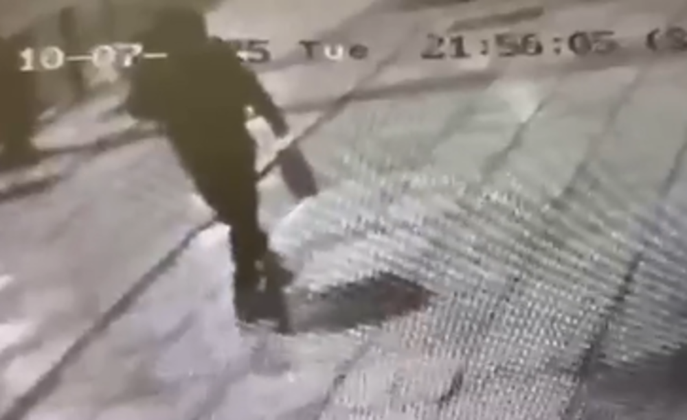 Στις κάμερες ασφαλείας φαίνεται ένας άνδρας με κουκούλα. Κρατάει στα χέρια του μια σακούλα στην οποία είχε τοποθετήσει τον εκρηκτικό μηχανισμό.
