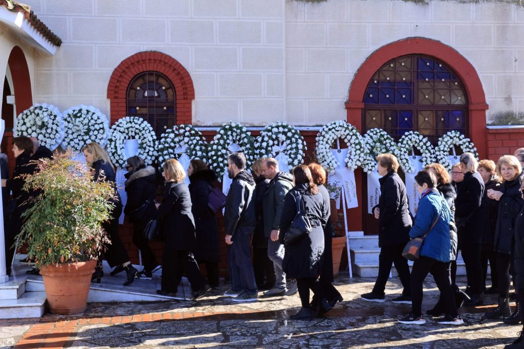 Σε κλίμα οδύνης τελέστηκε και η κηδεία της Βασιλικής Σκαμπαρδώνη-Καραγιάννη, με τους δικούς της ανθρώπους να την αποχαιρετούν στις 14:00 μ.μ. στον ναό Αγίου Δημητρίου Φιλύρας Τρικάλων. Τραγικές φιγούρες ο σύζυγος, τα παιδιά και οι γονείς της.