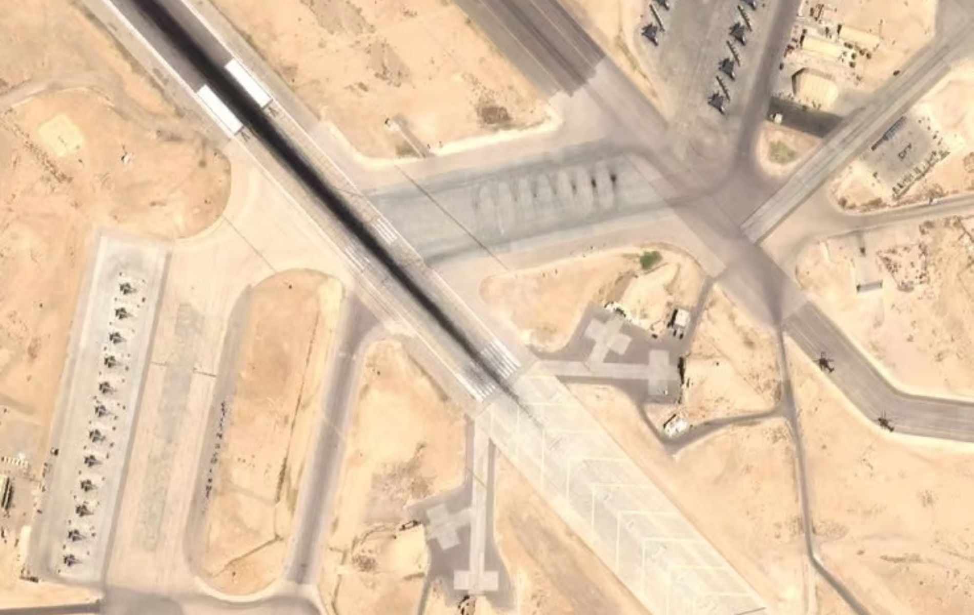 Οι εικόνες, που αποδίδονται στην Airbus, παρουσιάζουν σειρές μαχητικών και ελικοπτέρων κατά μήκος των διαδρόμων και των χώρων στάθμευσης. Ορισμένα αεροσκάφη φαίνονται μερικώς καλυμμένα από υπόστεγα, γεγονός που αφήνει ανοικτό το ενδεχόμενο ο πραγματικός αριθμός να υπερβαίνει εκείνον που είναι ορατός σε ανοικτούς χώρους. Η συγκέντρωση αυτή συνιστά σαφή μεταβολή τόσο στον επιχειρησιακό ρυθμό όσο και στη σύνθεση των μέσων της βάσης.