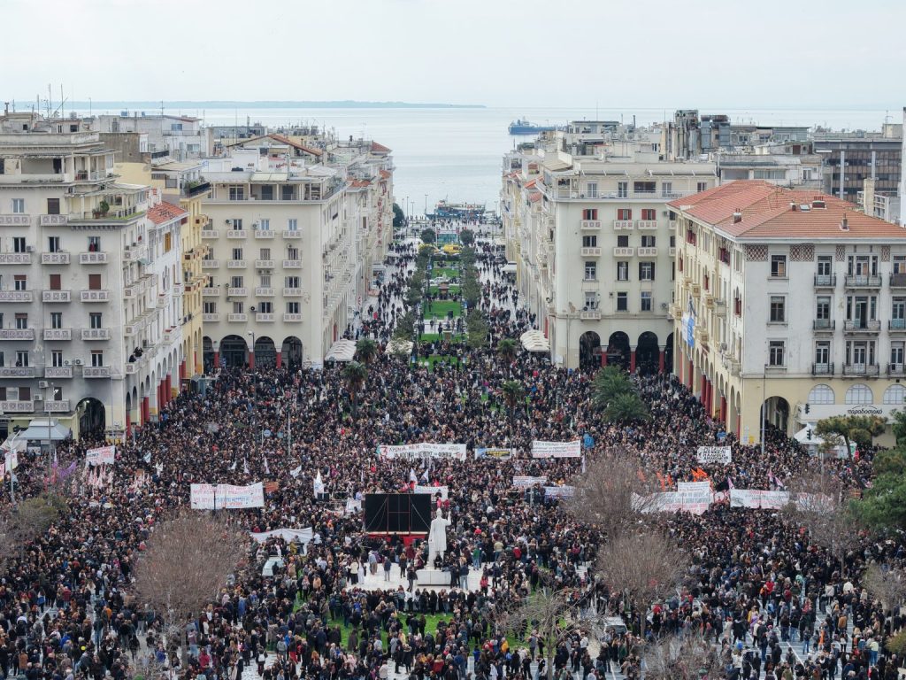 Με πάγιο αίτημα την απονομή δικαιοσύνης χιλιάδες άνθρωποι κάθε ηλικίας, από φοιτητές και γονείς με τα παιδιά τους μέχρι ηλικιωμένα ζευγάρια, συγκεντρώθηκαν μαζικά στο κέντρο της Θεσσαλονίκης, στην περιοχή γύρω από το άγαλμα του Βενιζέλου, προκειμένου να τιμήσουν τα θύματα της τραγωδίας της 28ης Φεβρουαρίου του 2023.