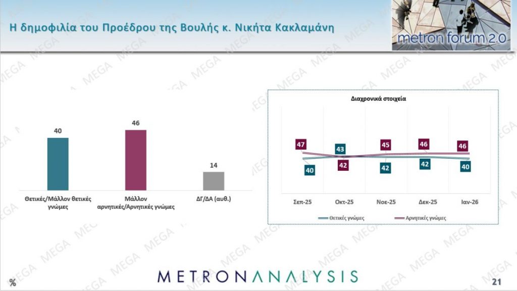 Η Metron Analysis πραγματοποίησε νέα δημοσκόπηση για το Mega, με τους πολίτες να απαντούν σε μια σειρά από ερωτήματα.