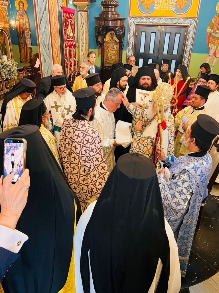 Στέκομαι σήμερα μπροστά σας χωρίς καμία αμφιβολία λόγω της πίστης μου στον Θεό, αλλά και λόγω της πίστης μου σε εσάς ως άνθρωπο και ως επίσκοπο. Πάντοτε ήσασταν χαρισματικός, ένας από τους εξυπνότερους ανθρώπους που θα γνωρίσουμε ποτέ. Όμως τα τελευταία δύο χρόνια —και ακόμη νωρίτερα, στη μικρή σας ενορία στη Νέα Φιλαδέλφεια— γίνατε πραγματικός ποιμένας, αφιερωμένος στις ανάγκες των πιστών. Γίνατε ο ποιμένας που επιβλέπει το ποίμνιό του με φροντίδα και συμπόνια. Είμαι τόσο περήφανος για εσάς και προσδοκώ μόνο τα καλύτερα για το μέλλον σας. Μην σταματάτε, Σεβασμιώτατε. Όπως γράφει ο Απόστολος Παύλος προς τον Τίτο, προσεύχομαι να συνεχίσετε να είστε οικονόμος του Θεού: άμεμπτος, φιλόξενος, φίλος του καλού, εγκρατής, δίκαιος, όσιος και πειθαρχημένος. Προσεύχομαι να παραμείνετε ταπεινός και προσηλωμένος στη διακονία Του Κυρίου και στη σπουδαία ευθύνη της προετοιμασίας των πιστών για τη Βασιλεία Του. Σας ευχαριστώ από καρδιάς για την εμπιστοσύνη σας και για την αδελφική αγάπη που μοιραζόμαστε. Είστε φίλος μου και σας αγαπώ· από σήμερα όμως είστε ο Επίσκοπός μου και θα σας τιμώ και θα σας υπηρετώ. Και καθώς αύριο εορτάζετε την δύο ετών επέτειο σας, Πάντα Άξιος!