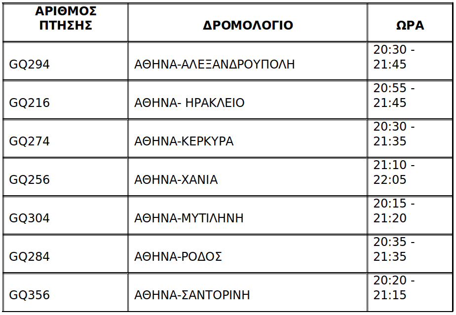 Το πρόγραμμα των πτήσεων της SKY express για τη μεταφορά του Αγίου Φωτός διαμορφώνεται ως εξής: