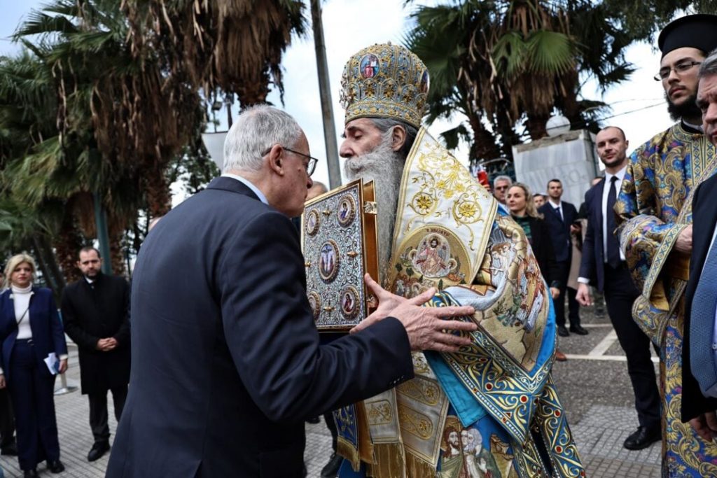 Προηγήθηκε πανηγυρική Θεία Λειτουργία στον Ιερό Ναό Αγίας Τριάδος Πειραιώς, χοροστατούντος του Μητροπολίτη Πειραιώς Σεραφείμ.