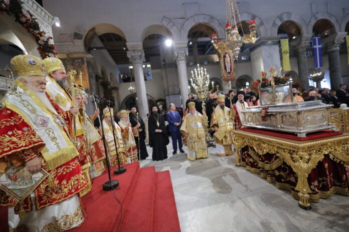Η Θεσσαλονίκη ντύθηκε στα γιορτινά για να τιμήσει τον Άγιο Δημήτριο τον Μυροβλύτη, τον Πολιούχο και Προστάτη της πόλης, σε μια λαμπρή δοξολογία που τελέστηκε το πρωί της Κυριακής 26 Οκτωβρίου στον Ιερό Ναό Αγίου Δημητρίου.