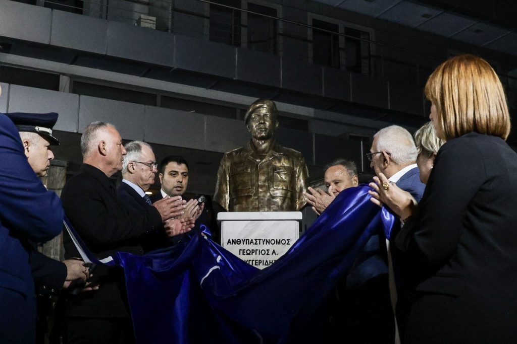 Τα αποκαλυπτήρια της προτομής του Γεωργίου Λυγγερίδη, του αστυνομικού των ΜΑΤ που έπεσε νεκρός, ύστερα από επίθεση χούλιγκαν στου Ρέντη, το Δεκέμβριο του 2023, έγιναν το απόγευμα στη Θεσσαλονίκη.