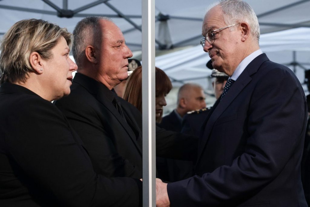 «Σάκη, Ευγενία υποκλινόμαστε με σεβασμό», είπε κλείνοντας την ομιλία του ο κ. Αγγελούδης απευθυνόμενος στους γονείς του αδικοχαμένου αστυνομικού.