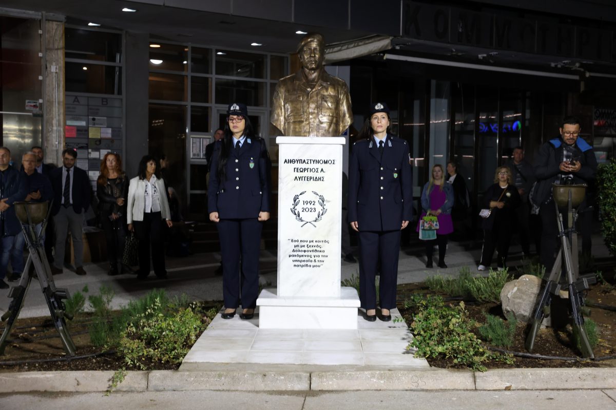 Τα αποκαλυπτήρια της προτομής του Γεωργίου Λυγγερίδη, του αστυνομικού των ΜΑΤ που έπεσε νεκρός, ύστερα από επίθεση χούλιγκαν στου Ρέντη, το Δεκέμβριο του 2023, έγιναν το απόγευμα στη Θεσσαλονίκη.
