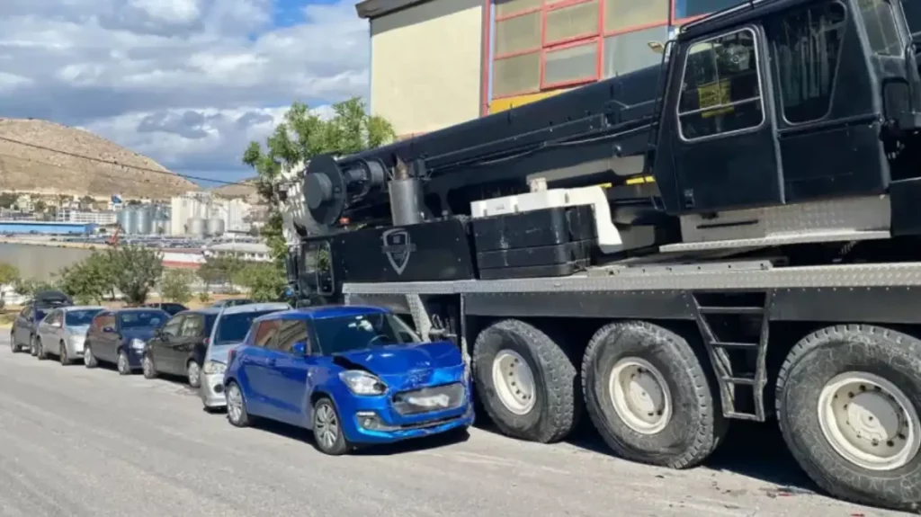 Κερατσίνι: Γερανός έπεσε πάνω σε 10 σταθμευμένα αυτοκίνητα
