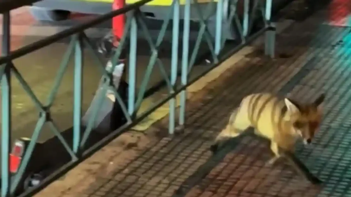 Σε βίντεο που ανέβηκε στο TikTok, το ζώο φαίνεται εμφανώς ταραγμένο από τα φώτα των αυτοκινήτων. Περνά ανάμεσα από κάγκελα και διασχίζει γρήγορα τον δρόμο, την ώρα που το φανάρι για τους πεζούς ήταν κόκκινο.