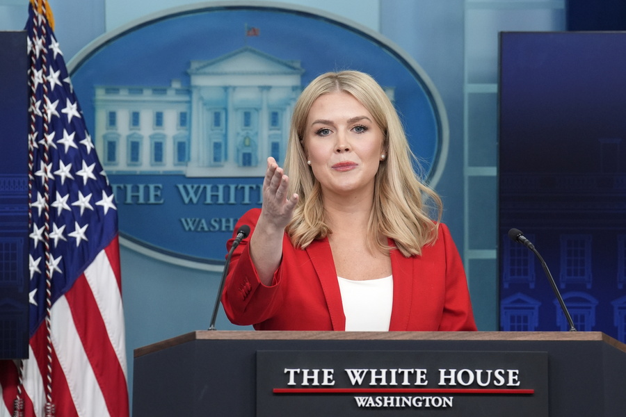 epa11924286 White House Press Secretary Karoline Leavitt speaks during a press briefing at the White House in Washington, DC, USA, 25 February 2025. Leavitt answered numerous questions by reporters. EPA/Yuri Gripas / POOL world rights