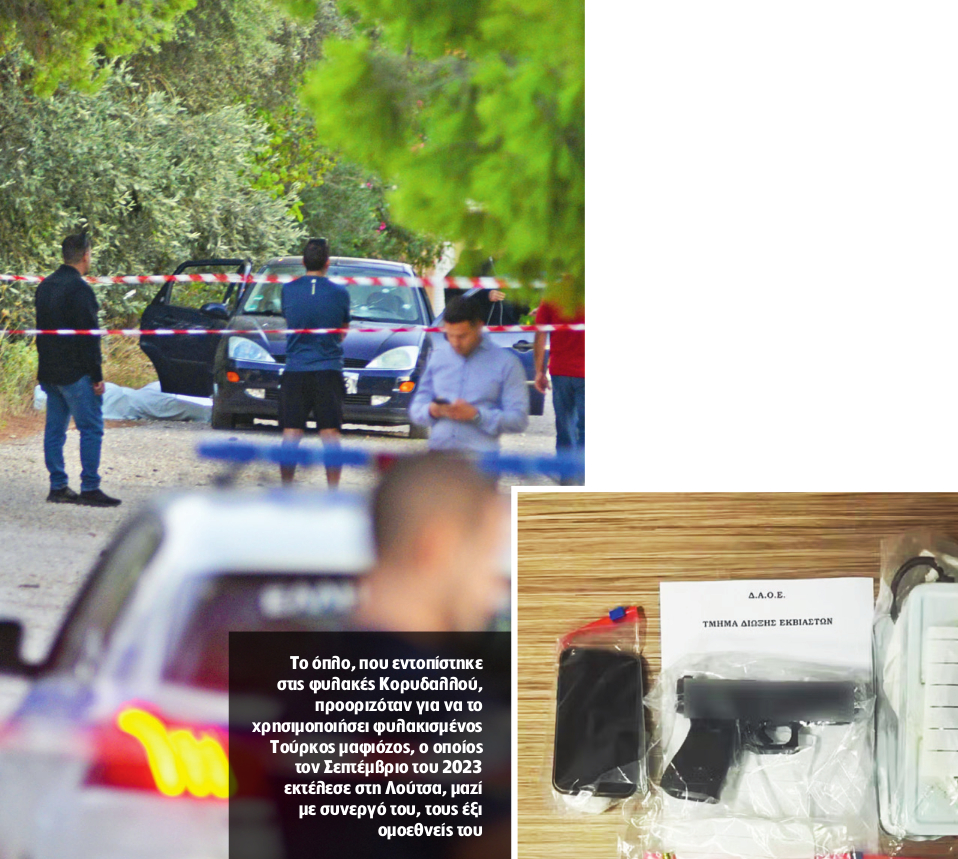 Σύμφωνα με άριστα διασταυρωμένες πληροφορίες της Realnews, έπειτα από πληροφορίες του ελληνικού FBI διαπιστώθηκε πως το όπλο που εντοπίστηκε προοριζόταν για να το χρησιμοποιήσει φυλακισμένος Τούρκος, ο οποίος θεωρείται ένας από τους πιο σκληρούς εκτελεστές του οργανωμένου εγκλήματος της γειτονικής χώρας. Πρόκειται για τον Tούρκο που τον Σεπτέμβριο του 2023 στη Λούτσα εκτέλεσε, μαζί με συνεργό του, τους έξι ομοεθνείς του, οι οποίοι ανήκαν στη συμμορία του διαβόητου Τούρκου μαφιόζου Μπαρίς Μπογιούν.