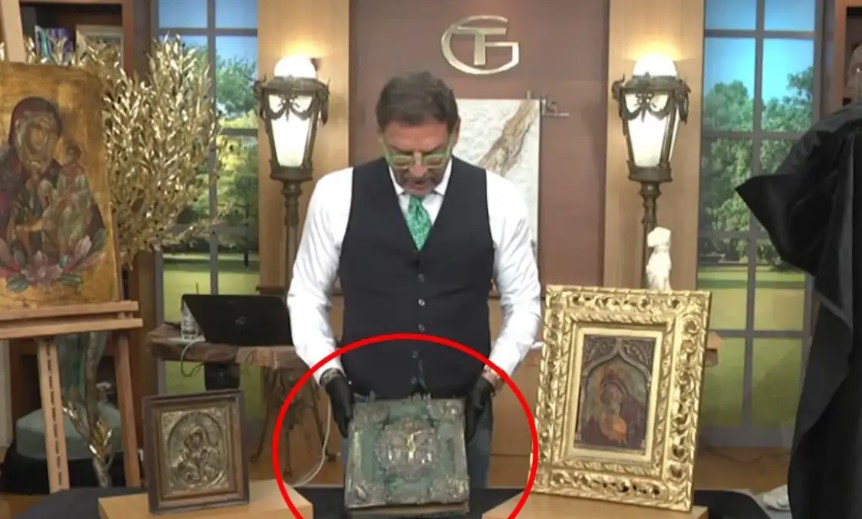 Μάλιστα, κατά τη διάρκεια μίας εκ των ανωτέρω ερευνών, προσέγγισε το σημείο η κατηγορούμενη, έχοντας στην κατοχή της το Ιερό Ευαγγέλιο που είχε παρουσιάσει σε δημοπρασία μέσω της εκπομπής του ο συγκατηγορούμενός της.
