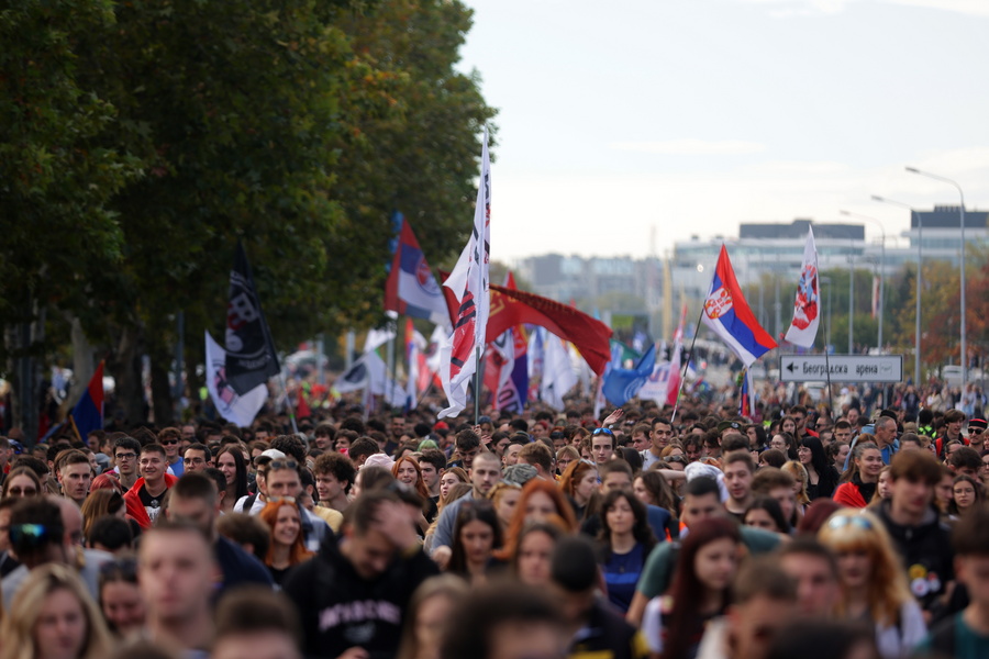 Σύμφωνα με εκτιμήσεις των φοιτητικών συλλόγων περισσότεροι από δέκα χιλιάδες φοιτητές απ όλα τα μήκη και πλάτη της χώρας βρίσκονται απόψε στους δρόμους με κατεύθυνση το Νόβι Σαντ.