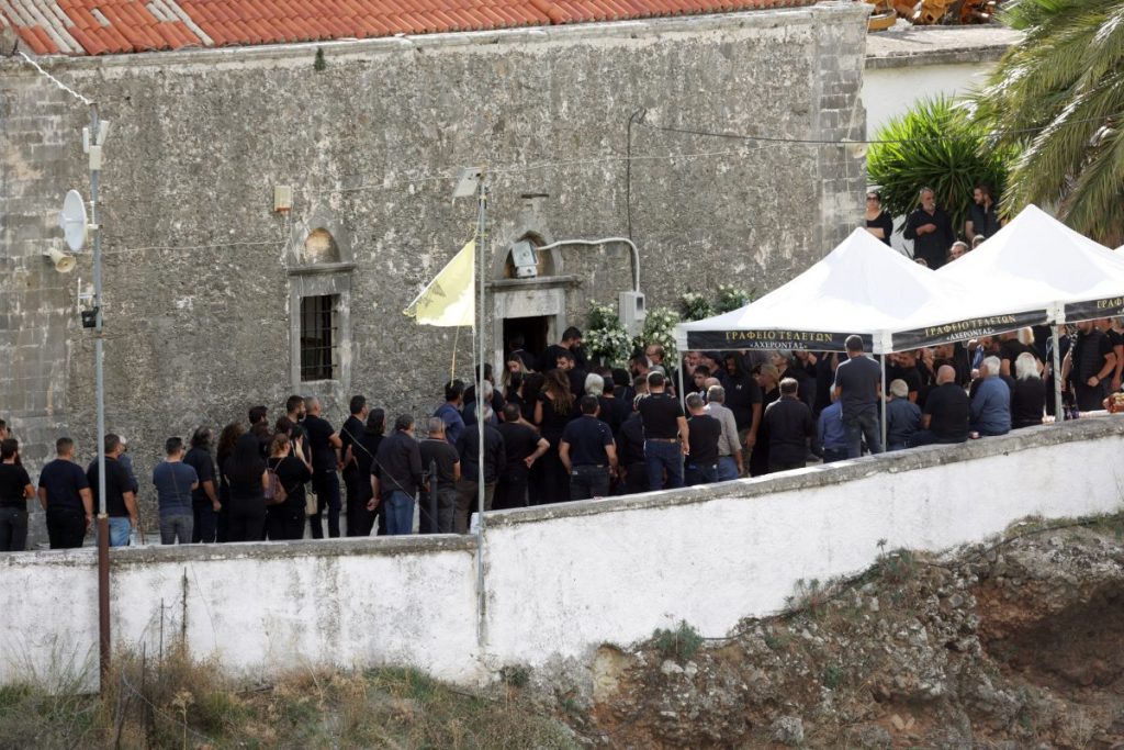Πλήθος κόσμου έδωσε το «παρών» στην κηδεία στον Ιερό Ναό Ευαγγελισμού της Θεοτόκου, με τις αστυνομικές δυνάμεις να είναι ενισχυμένες και παραταγμένες σε διάφορα σημεία του χωριού αλλά και της ευρύτερης περιοχής. Κατά τη μεταφορά της σορού από το σπίτι προς την εκκλησία, η πομπή σταμάτησε για λίγο στο σημείο όπου εκτυλίχθηκε το μακελειό, με μέλη της οικογένειας του 39χρονου να ξεσπούν σε λυγμούς και φωνές.