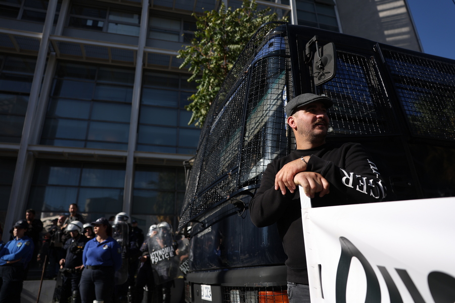 Αστυνομικές δυνάμεις βρισκονται παραταγμένες μπροστά από το κτίριο των γραφείων του ΟΠΕΚΕΠΕ κατά τη διάρκεια συγκέντρωσης διαμαρτυρίας αγρότών και κτηνοτρόφων από όλη τη χώρα, Αθήνα, Τρίτη 11 Νοεμβρίου 2025. Η κινητοποίηση διοργανώνεται από την Εθνική Ένωση Αγροτικών Συνεταιρισμών διεκδικώντας την άμεση καταβολή των αποζημιώσεων από τον ΟΠΕΚΕΠΕ, καθώς και την στήριξη της κτηνοτροφίας που βρίσκεται σε κρίση λόγω της ευλογιάς των αιγοπροβάτων. Μετά το συλλαλητήριο έξω από το Υπουργείο Αγροτικής Ανάπτυξης, θα ακολουθήσει πορεία και παράσταση διαμαρτυρίας προς τον ΟΠΕΚΕΠΕ, ενώ μετά αντιπροσωπεία των αγροτών θα επιδώσει ψήφισμα με τα αιτήματα τους στον Αντιπρόεδρο της Κυβέρνησης και τον Υπουργό Αγροτικής Ανάπτυξης. ΑΠΕ-ΜΠΕ/ΑΠΕ-ΜΠΕ/ΓΙΩΡΓΟΣ ΒΙΤΣΑΡΑΣ
