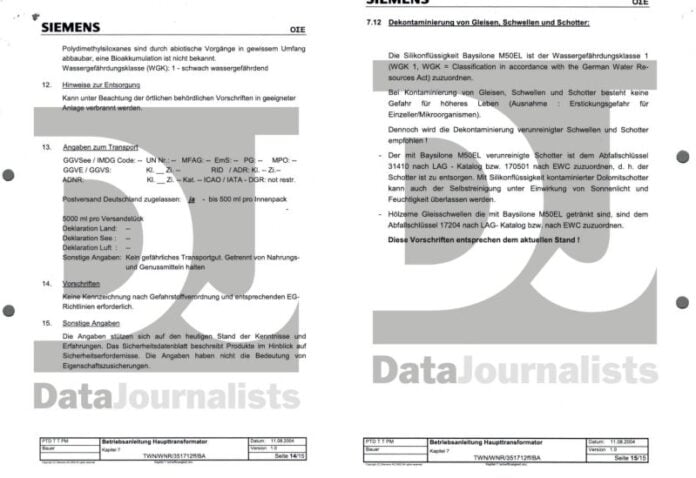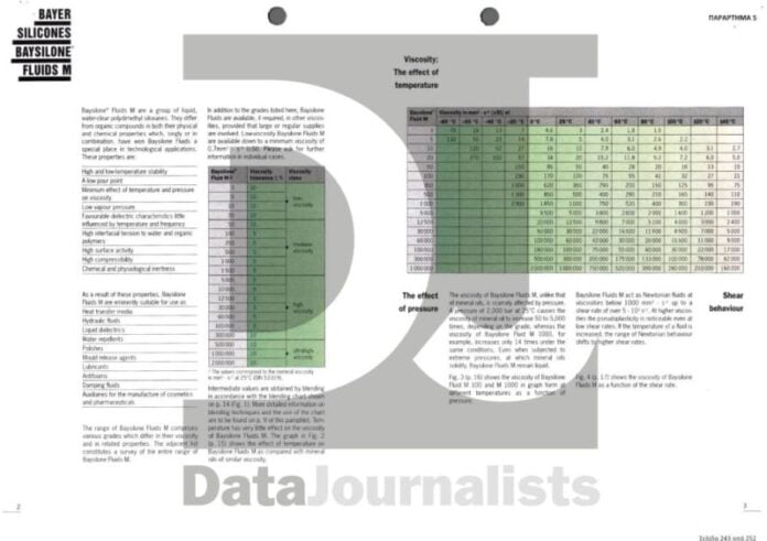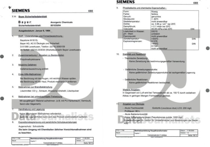 Οι Data Journalists δημοσίευσαν επίσημα έγγραφα της Siemens που αναγράφουν τα δεδομένα ασφαλείας για τα έλαια σιλικόνης.