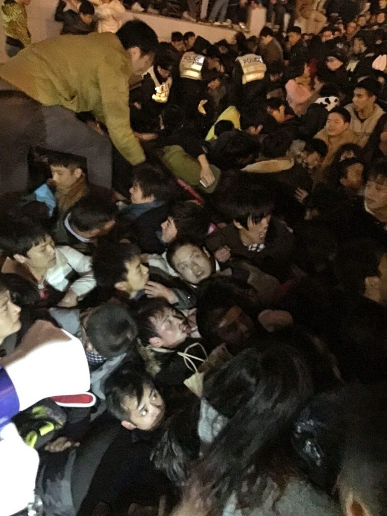 Την παραμονή της Πρωτοχρονιάς του 2014, δεκάδες χιλιάδες άνθρωποι συγκεντρώθηκαν στην παραποτάμια περιοχή Bund της Σαγκάης για να υποδεχθούν το νέο έτος. Λίγο πριν τα μεσάνυχτα, λανθασμένη πληροφορία για διανομή δώρων προκάλεσε ξαφνική μετακίνηση του πλήθους.