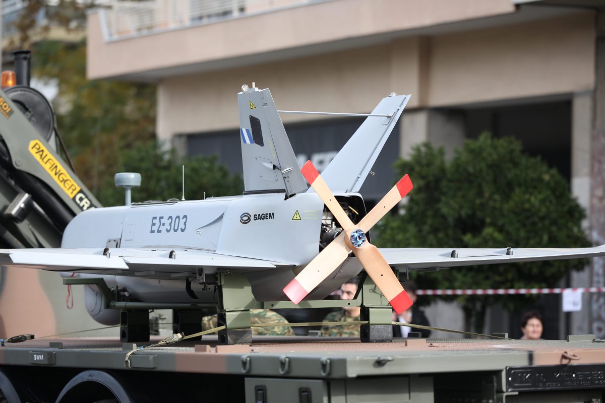 Συγκεκριμένα, στην παρέλαση συμμετείχε το μη επανδρωμένο αεροσκάφος «ΗΕRΟΝ», το οποίο χρησιμοποιείται για την επιτήρηση των συνόρων της πατρίδας μας.