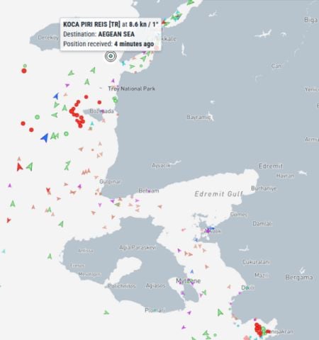 Για την ώρα ωστόσο, πλέει κοντά στις τουρκικές ακτές, σε μια θαλάσσια περιοχή που βρίσκεται βόρεια της Λέσβου.